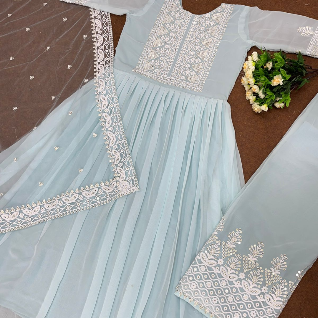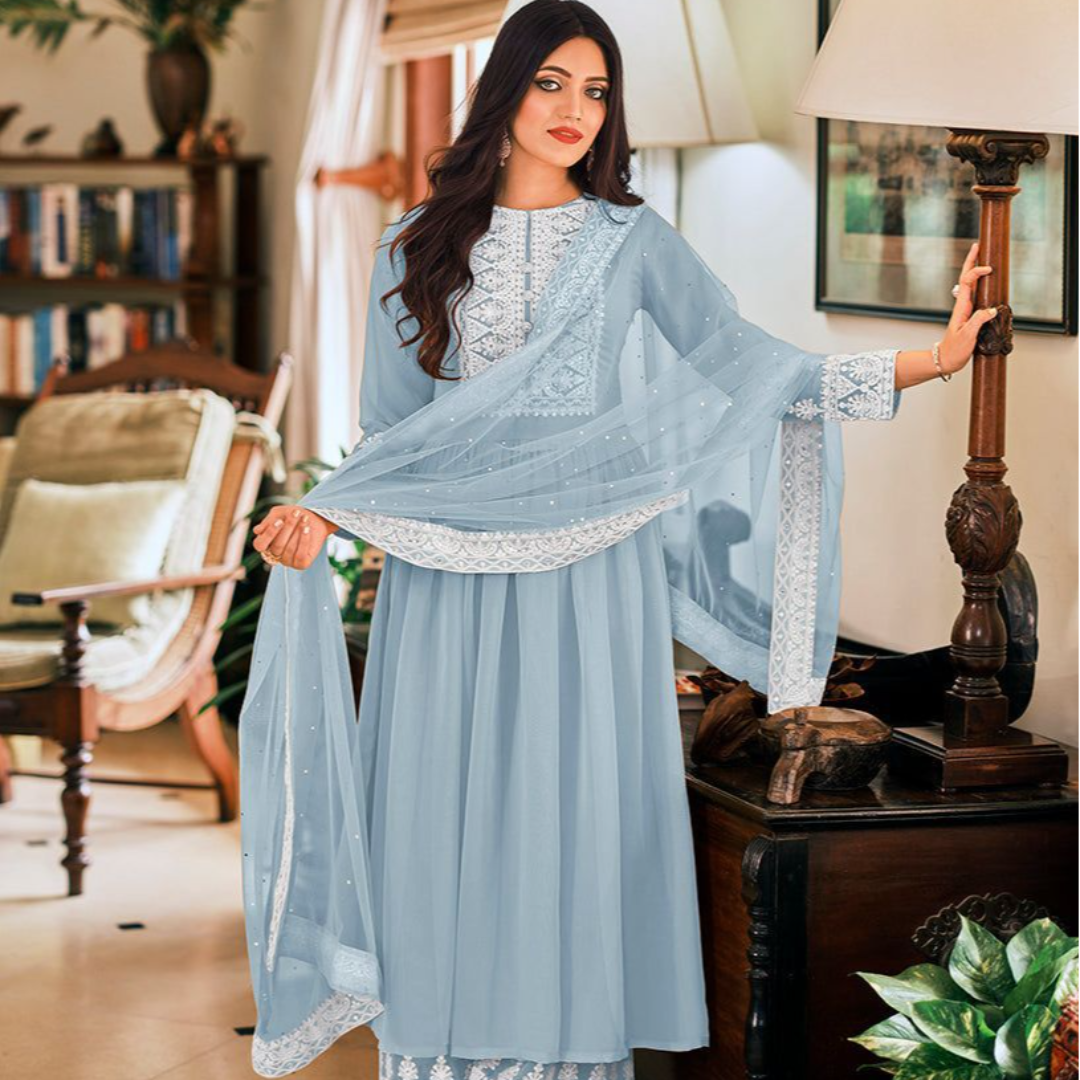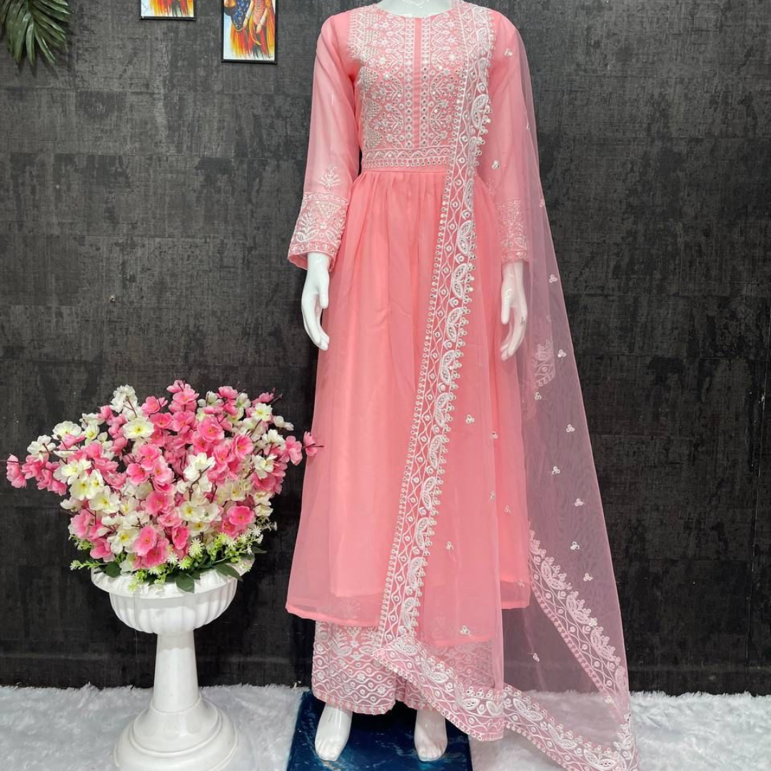 NEW DESIGNER PARTY WEAR BEAUTIFUL FANCY EMBROIDERY AND 5MM SEQUENCES WORK TOP-PALAZZO WITH DUPATTA