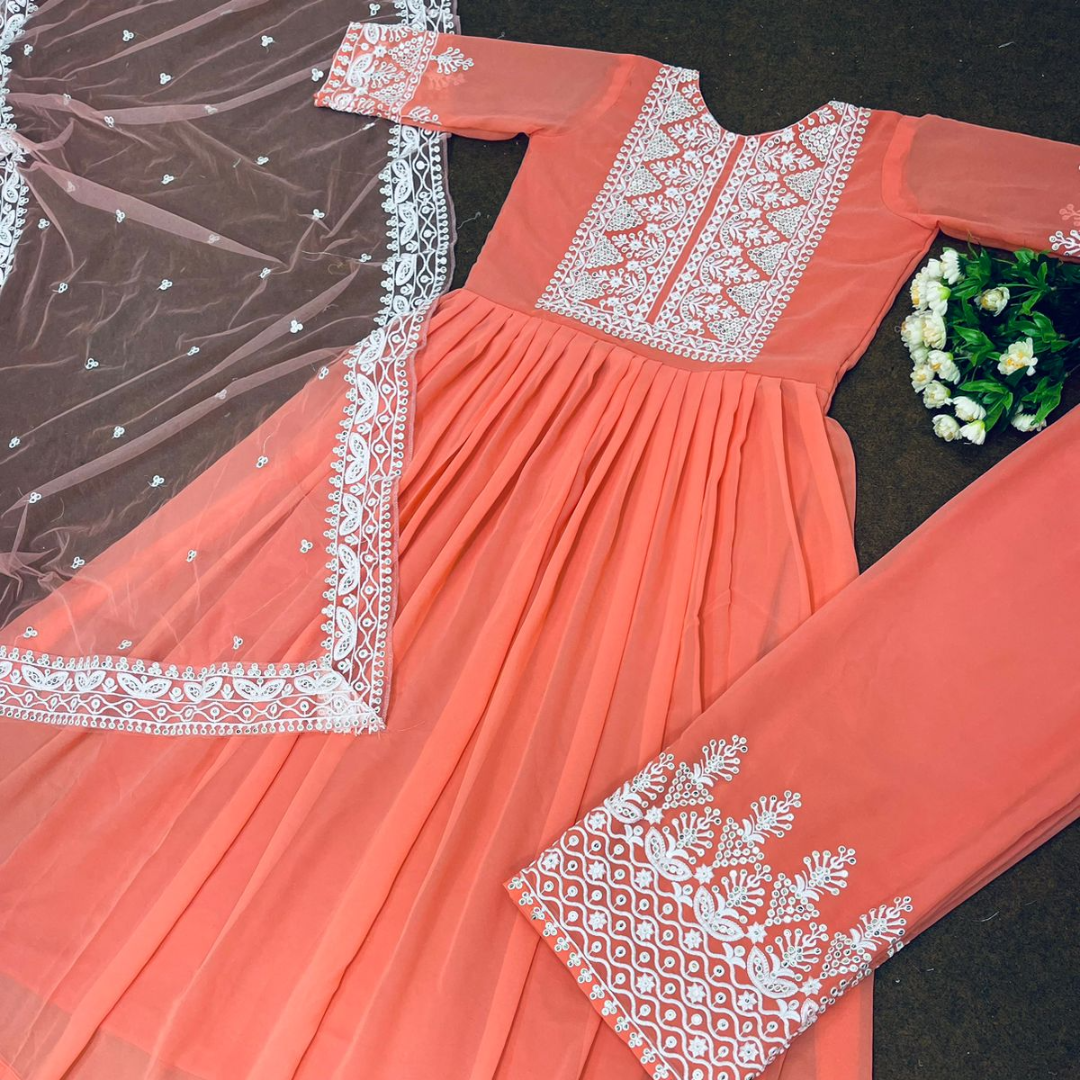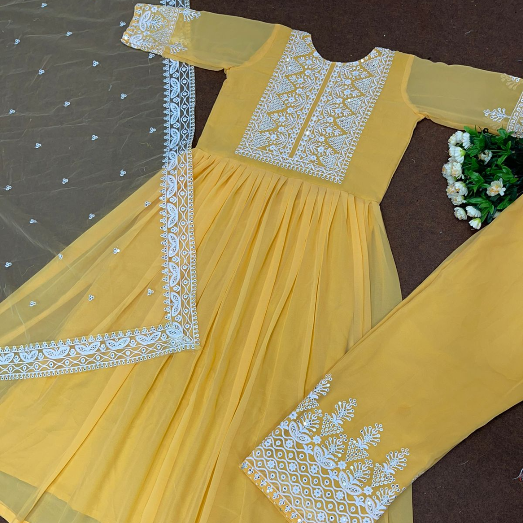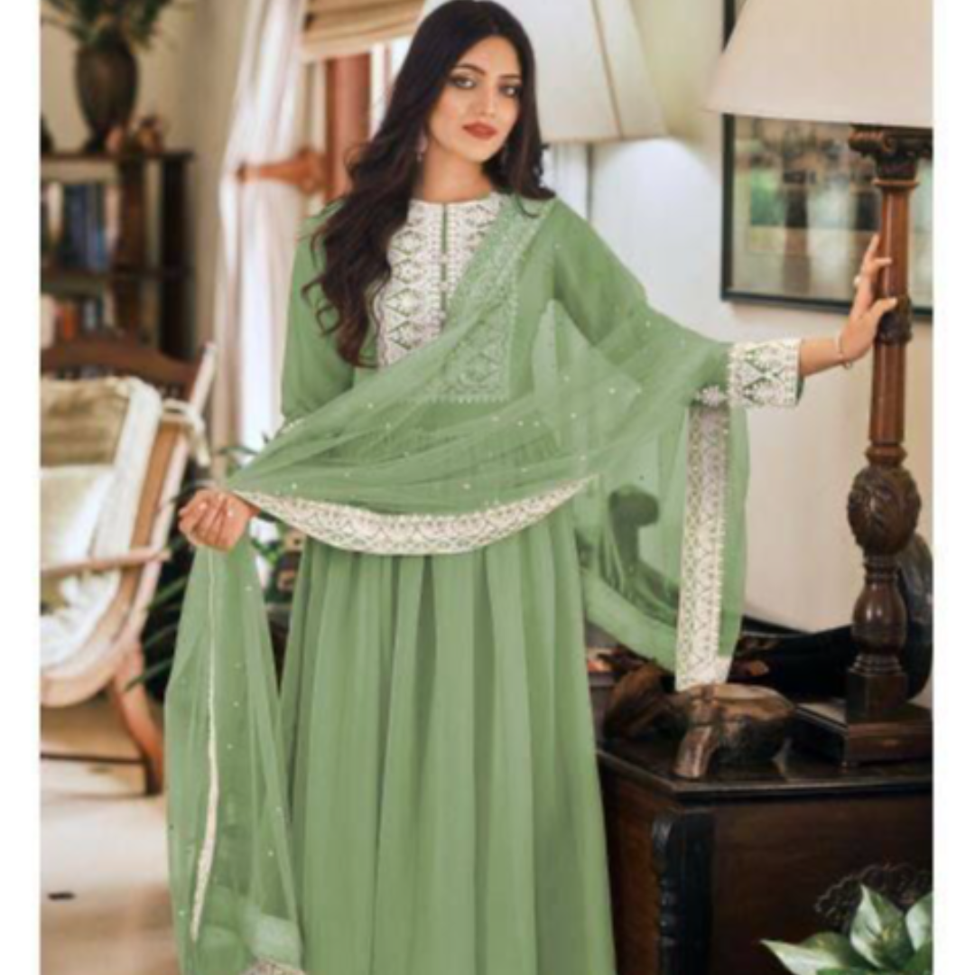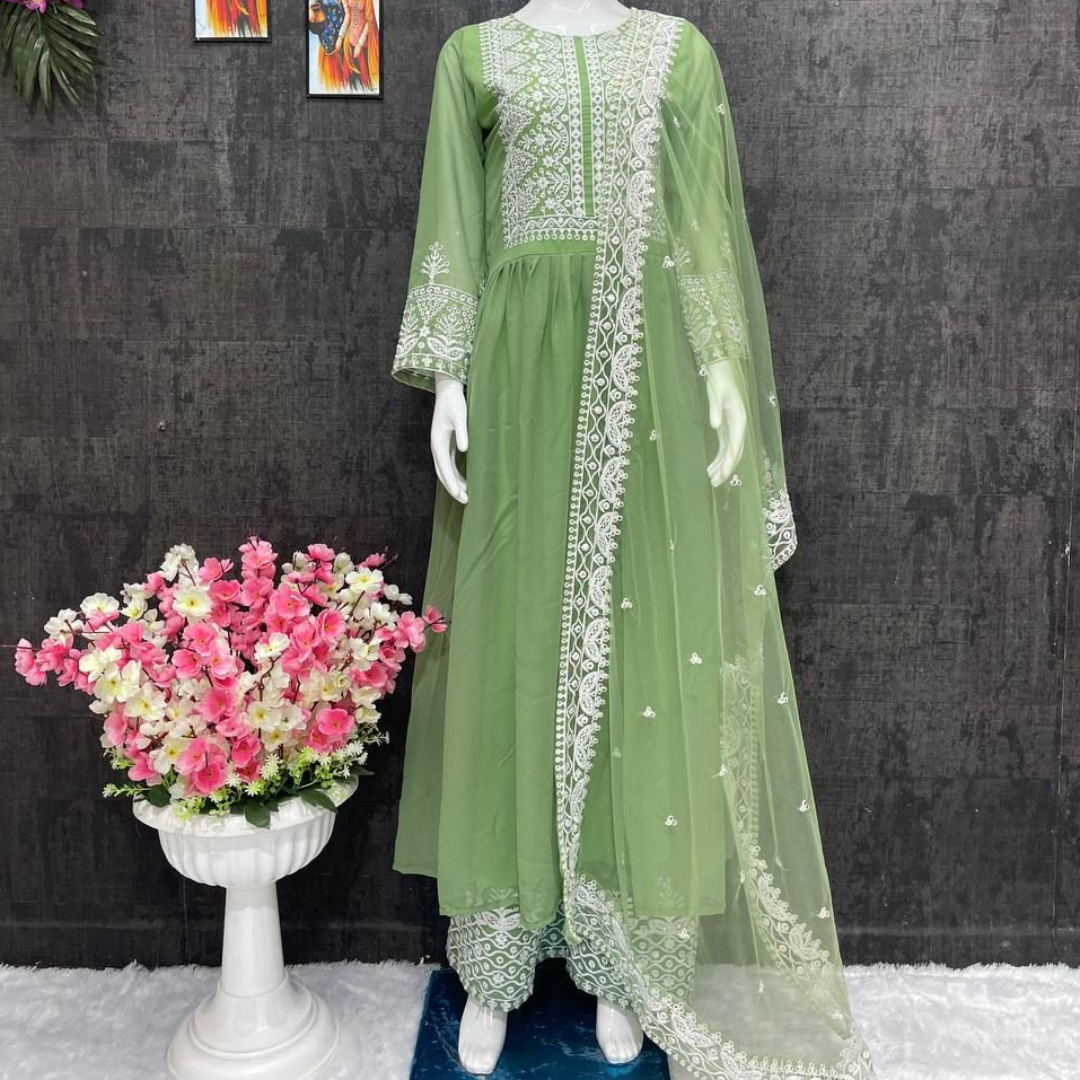 NEW DESIGNER PARTY WEAR BEAUTIFUL FANCY EMBROIDERY AND 5MM SEQUENCES WORK TOP-PALAZZO WITH DUPATTA