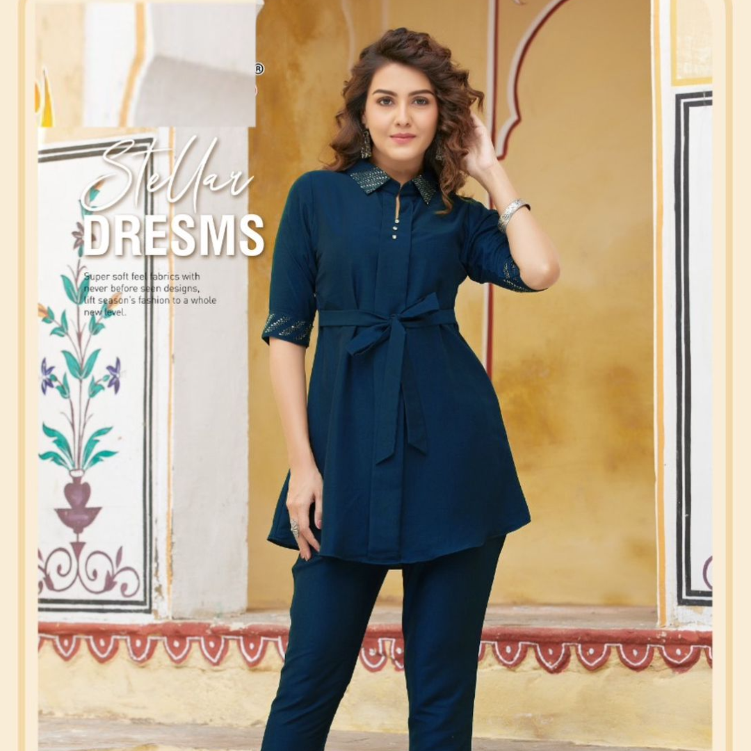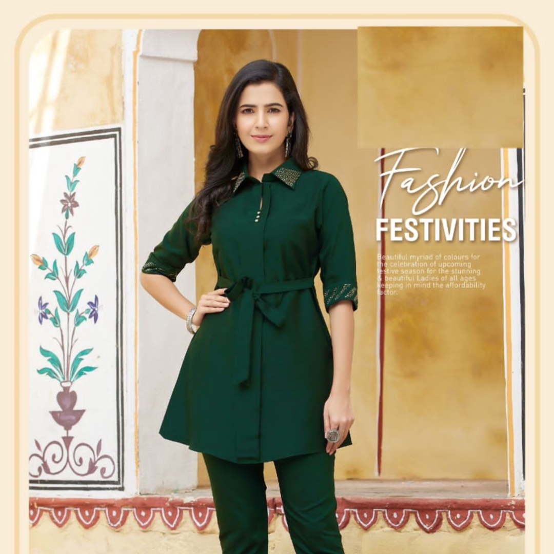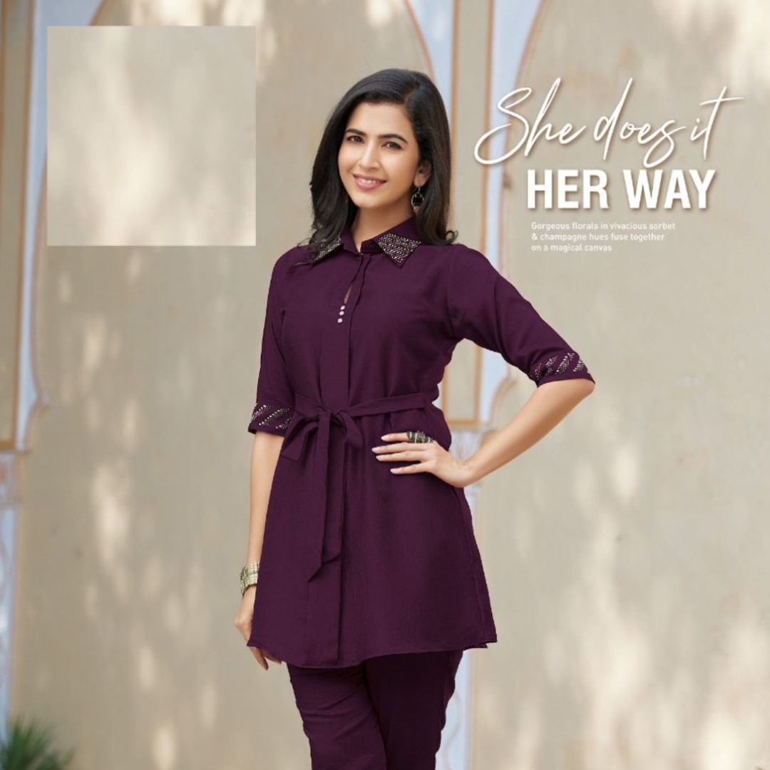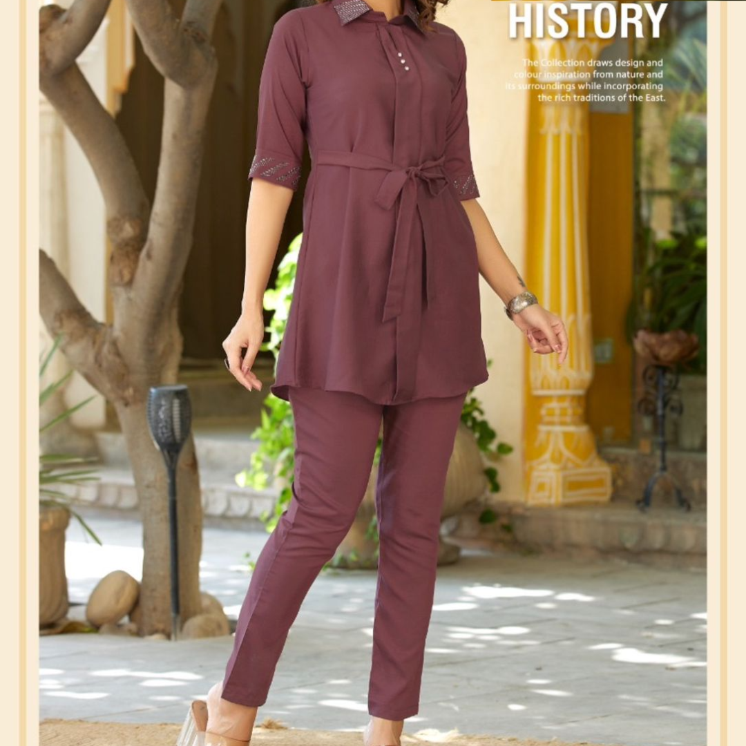 *Top* : Heavy Chinon silk with Swarovski work and belt .